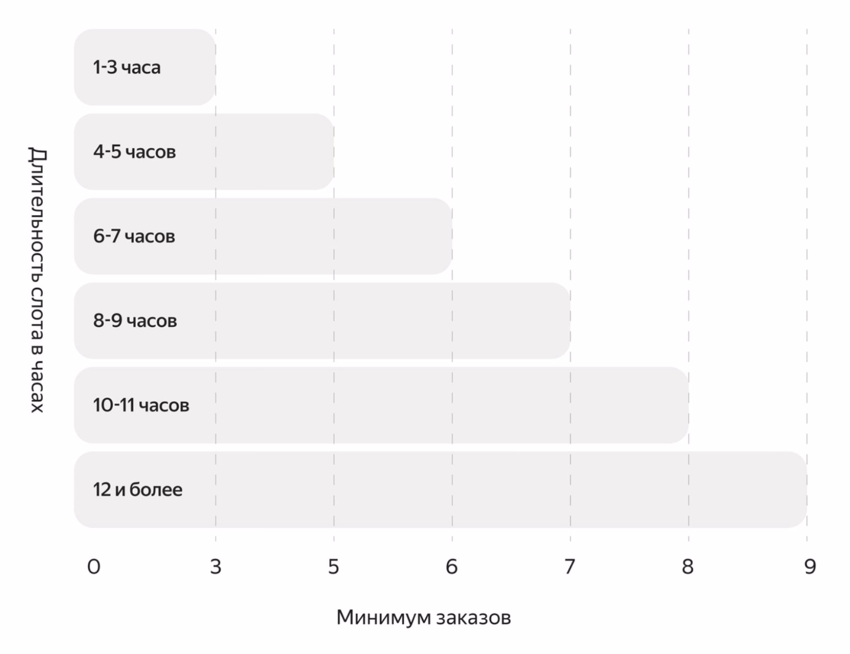 Нужно выполнить определённое количество заказов. Сколько именно, зависит от плановой продолжительности слота, которая обозначена в Расписании.